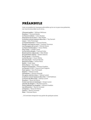 Si vous aimez les héros. Si vous condamnez la violence, y compris en fiction. Si pour vous, une bonne histoire doit véhiculer une morale positive. Si vous estimez que l'Amour, le Courage et l'Honnêteté triompheront toujours de la Corruption et des Forces du Mal... tant mieux pour vous. Reposez vite ce livre et achetez-en un autre. En revanche, si vous appartenez à cette frange d'individus qui prennent plaisir au spectacle des bassesses humaines, de la rapacité, de la folie et de tous les instincts criminels... Si vous aimez les sociopathes, les femmes fatales, les gangsters arrogants, les arrivistes forcenés, les policiers corrompus et les innocents sacrifiés...bienvenue dans le cinéma de Tyler Cross. Quatre-vingts films présentés, illustrés et chroniqués par deux auteurs qui ont pour seule morale leur amour du noir. Et qui savent, comme vous, que lorsque les gentils gagnent, c'est parce qu'en fait l'histoire n'est pas terminée...