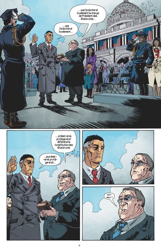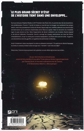 Dure journée pour Stephen Blades, le 44n Président des Etats-Unis. Au premier jour de son investiture, son prédécesseur, Francis T. Carroll, lui laisse un courrier qui va changer non seulement son propre destin, mais très probablement la face du Monde. Depuis sept ans, la NASA a détecté une construction extraterrestre sur la ceinture d'astéroïdes entre Mars et Jupiter. Mais la rencontre du troisième type n'a pas encore eu lieu. Dans l'expectative de devoir combattre une invasion d'outre-espace et de pouvoir défendre l'Humanité, Carroll a envoyé les troupes américaines sur tous les fronts, inlassablement, ce qui l'a rendu pour le moins impopulaire. Les Etats-Unis sont en crise : la guerre, une économie au bord du gouffre, un système de santé entier à réformer... Avait-il finalement raison de préparer la nation au désastre imminent ? Et quel sera le rôle de l'équipage du Clarke, le vaisseau d'observation envoyé vers "l'ennemi" voici trois ans déjà ? Désormais, l'homme le plus puissant de la planète va avoir affaire l'univers tout entier... Un pur récit d'action et d'aventures construit à la manière d'une série TV de science-fiction à grand spectacle par Charles Soule, le nouveau scénariste star du comics, et le dessinateur Alberto J. Alburquerque !