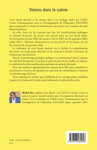 Lors des manifestations politiques en période électorale, les jeunes ont souvent payé un lourd tribut. Les événements de juin 2006, de janvier et février 2007, du 28 septembre 2009, juillet 2013... illustrent combien les jeunes ont été des victimes de premier ordre. Cette bande dessinée aide les jeunes à comprendre le processus électoral en les amenant à prendre conscience de l'importance des élections. Voici expliqué le contenu du code électoral guinéen, dans le souci de prévenir les conflits, la violence, le vandalisme, lors des manifestations politiques en période électorale.