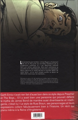 Les puissants sont tombés ! Jimmy Regent a finalement été mis en PLS suite aux horribles révélations de sa progéniture maléfique et il est désormais enfermé dans une cellule capitonnée. Alors qu'il commence sa nouvelle vie en rebondissant sur les murs, sa coéquipière Nancy découvre la vérité derrière le terrible destin de notre héros - et se rend compte qu'elle va devoir se débrouiller seule avec les méchants... Découvrez la suite et fin des aventures du meilleur espion Britannique... Garth Ennis s'attaque au mythe de James Bond, et comme on pouvait s'y attendre, il ne le fait pas à moitié. Derrière ses excentricités se cache en réalité une habile déconstruction ainsi qu'une certaine vision de notre société moderne... et en plus, c'est terriblement fun !