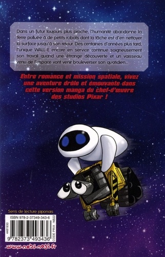Dans un futur toujours plus proche, l'humanité abandonne la Terre polluée à de petits robots dont la tâche est d'en nettoyer la surface jusqu'à son retour. Des centaines d'années plus tard, l'unique Wall-E encore en service continue soigneusement son travail quand une étrange découverte et un vaisseau venu de l'espace vont venir bouleverser son quotidien... Entre romance et mission spatiale, vivez une aventure drôle et émouvante dans cette version manga du chef-d'oeuvre des studios Pixar !