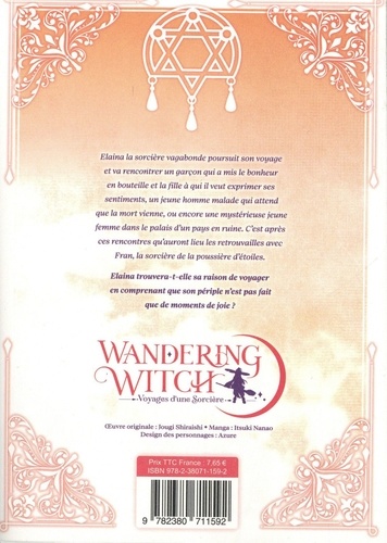 Elaina la sorcière découvre un monde vaste, rempli de mystères... et de dangers ! Elaina, la sorcière vagabonde, poursuit son voyage et va rencontrer un garçon qui a mis le bonheur en bouteille et la fille à qui il veut exprimer ses sentiments, un jeune homme malade qui attend que la mort vienne, ou encore une mystérieuse jeune femme dans le palais d'un pays en ruines. C'est après ces rencontres qu'auront lieu les retrouvailles avec Fran, la sorcière de la poussière d'étoiles. Elaina trouvera-t-elle sa raison de voyager en comprenant que son périple n'est pas fait que de moments de joie ?