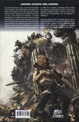 Gardienne. Chasseuse. Mère. Guerrière. Deux mille ans dans le futur, sur une Terre ravagée par les guerres, les catastrophes naturelles et le temps, se dressent ici ou là des royaumes fortifiés et des enclaves secrètes où l'humanité s'accroche à la vie... L'une d'elle est le Bosquet, un refuge biologiquement modifié abritant les connaissances scientifiques du passé. Mais le Bosquet se meurt. Sous la protection de la War Mother et son fusil doué de conscience, ses habitants sont face à un choix difficile : rester et périr, ou chercher un nouveau foyer dans un monde extérieur rempli de dangers ? La Mère de la Guerre parviendra-t-elle à sortir son peuple de l'isolement ? Et même si elle trouve l'étrange citadelle qu'elle cherche, pourra-t-elle vaincre les monstruosités qui se tapissent à l'intérieur ? Tirée des pages de Rai, la nouvelle héroïne de l'an 4001 prend les rênes du futur de l'univers Valiant, dans ce récit complet écrit par Fred Van Lente (Archer and Armstrong) et illustré par Stephen Segovia (Ninjak) et Tomas Giorello (X-0 Manowar) !
