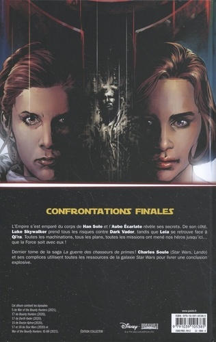 L'Empire s'est emparé du corps de Han Solo et l'Aube Ecarlate révèle ses secrets. De son côté, Luke Skywalker prend tous les risques contre Dark Vador, tandis que Leia se retrouve face à Qi'ra : Toutes les machinations, tous les plans, toutes les missions ont mené nos héros jusqu'ici... que la Force soit avec eux ! Dernier tome de la saga La guerre des chasseurs de primes ! Charles Soule (Star Wars, Lando) et ses complices utilisent toutes les ressources de la galaxie Star Wars pour livrer une conclusion explosive.