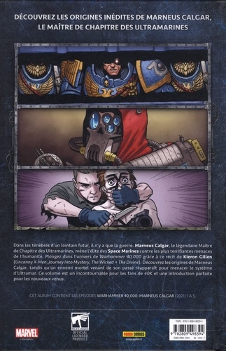 Marneus Calgar est le légendaire chef des Ultramarines, l'élite des guerriers de l'espace chargés de défendre l'humanité contre les menaces qui pèsent sur une galaxie constamment en guerre. Vous allez découvrir les origines de Calgar, de ses débuts sur Nova Thulium jusqu'au présent, où les forces du chaos tentent une nouvelle fois de renverser l'Imperium... et elles pourraient bien réussir cette fois ! Depuis 1987, le jeu de plateau Warhammer 40 000 rencontre un franc succès. A l'occasion de la neuvième édition du jeu, Games Workshop et Marvel se sont associés pour créer des comics inspirés de cet univers dystopique de type science fantasy. Comme à l'accoutumée, la Maison des Idées n'a pas fait les choses à moitié, puisqu'elle a confié la première mini-série à Kieron Gillen (qui a démontré sa passion pour les jeux de rôle avec DIE) et Jacen Burrows (PUNISHER : SOVIET).