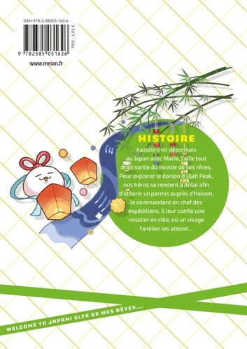 Uridra, l'archidragonne, n'en peut plus de son rôle de maman ? ! Je veux m'amuser, moi aussi ! Kazuhiro vit désormais au Japon avec Marie, l'elfe tout droit sortie du monde de ses rêves. Pour explorer le donjon d'Ujah Peak, nos héros se rendent à Arilai afin d'obtenir un permis auprès d'Hakam, le commandant en chef des expéditions. Il leur confie une mission en ville, où un visage familier les attend... Une Elfe découvre notre monde, le Japon et ses spécialités !