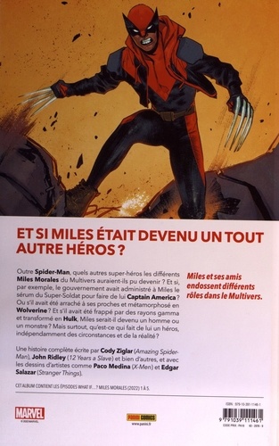 Et si, au lieu d'être mordu par une araignée radioactive, Miles Morales avait reçu de la part du gouvernement américain le sérum du Super-Soldat ? Ou était né mutant ? Ou, encore, imaginons qu'il ait été transformé par des rayons gamma pour devenir Hulk ? Explorez ces nombreuses possibilités en visitant des univers parallèles. Les deux hits animés des Studios Marvel se rencontrent puisque le concept What if... ? est appliqué ici à Miles Morales, de retour en 2023 dans Spider-Man : Across the Spider-Verse (Part one) ! Découvrez ces versions alternatives de Miles, devenu Captain America, Wolverine ou Hulk !