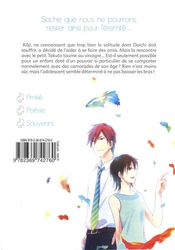 Kôji, ne connaissant que trop bien la solitude dont Daichi doit souffrir, a décidé de l'aider à se faire des amis. Mais la rencontre avec le petit Takuto tourne au vinaigre... Est-il seulement possible pour un enfant doté d'un pouvoir si particulier de se comporter normalement avec des camarades de son âge ? Rien n'est moins sûr, mais l'adolescent semble déterminé à ne pas baisser les bras !