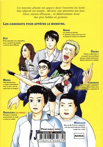 Coincé dans leur lycée après une attaque mondiale de monstres, un groupe formé des élèves les plus forts, décide de sacrifier un survivant par jour pour apaiser la créature qui les empêche de sortir. Mais alors qu'ils ne sont plus que sept, les rapports de force commencent à changer. La loi du plus fort s'applique-t-elle vraiment ici ?