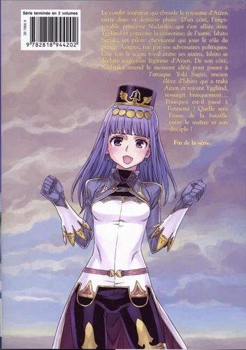 Le conflit intérieur qui ébranle le royaume d'Aizen entre dans sa dernière phase. D'un côté, l'impitoyable princesse Nadarika, qui s'est alliée avec Yggländ et convoite la couronne ; de l'autre, Ishito Suzuki, un pilote chevronné qui joue le rôle du prince Asagito, tué par ses adversaires politiques. Une fois le sceau royal entre ses mains, Ishito se déclare souverain légitime d'Aizen. De son côté, Nadarika attend le moment idéal pour passer à l'attaque. Yoki Sagiri, ancien élève d'Ishito qui a trahi Aizen et rejoint Yggländ, ressurgit brusquement... Pourquoi est-il passé à l'ennemi ? Quelle sera l'issue de la bataille entre le maître et son disciple ?