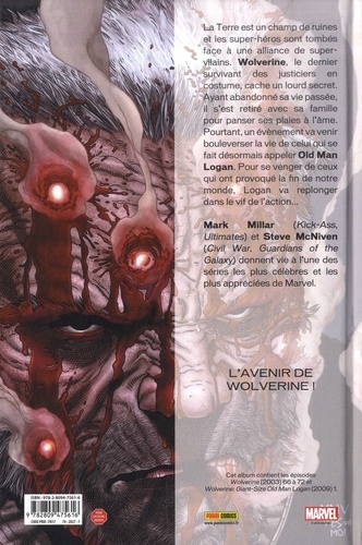 La Terre est un champ de ruines et les super-héros sont tombés face à une alliance de super-vilains. Wolverine, le dernier survivant des justiciers en costume, cache un lourd secret. Ayant abandonné sa vie passée, il s'est retiré avec sa famille pour panser ses plaies à l'âme. Pourtant, un événement va venir bouleverser la vie de celui qui se fait désormais appeler Old Man Logan. Pour se venger de ceux qui ont provoqué la fin de notre monde, Logan va replonger dans le vif de l'action... Mark Millar (Kick-Ass, Ultimates) et Steve McNiven (Civil War, Guardians of the Galaxy) donnent vie à l'une des séries les plus célèbres et les plus appréciées de Marvel. L'AVENIR DE WOLVERINE ! Cet album contient les épisodes Wolverine (2003) 66 à 72 et Wolverine : Giant-Size Old Man Logan (2009) 1.