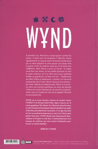 A première vue, Wynd est un jeune garçon comme les autres. Il mène une vie tranquille à Pipetown, donne régulièrement un coup de main à la taverne locale tenue par sa mère adoptive et aime passer son temps libre à guetter le fils du jardinier royal qui ne le laisse pas indifférent. Mais Wynd a aussi un secret : la magie coule dans ses veines, et ses oreilles pointues en sont le signe extérieur qu'il ne doit sous aucun prétexte exhiber au grand jour. Car, au sein du royaume, la magie est strictement interdite. Les gens comme lui y sont traqués et éliminés. Tiraillé entre son désir d'être un adolescent "normal" et l'envie de comprendre d'où il vient et le sens des rêves étranges qui occupent chacune de ses nuits, Wynd n'aura qu'une solution... fuir. Avec l'aide de sa meilleure amie, Oakley, il va se lancer dans une aventure périlleuse au cours de laquelle il découvrira toute l'étendue de ses pouvoirs extraordinaires mais où l'ombre de celui qu'on appelle l'écorché ne sera jamais loin. Wynd est la toute dernière création du tandem James Tynion IV & Michael Dialynas, déjà à l'oeuvre sur le roman graphique The Woods. Ils s'illustrent cette fois dans un récit d'aventure fantastique haletant doublé d'une quête d'identité particulièrement touchante. A un âge charnière où l'on se questionne beaucoup sur soi et où l'Autre peut parfois faire peur, WYND aborde avec beaucoup de bienveillance et d'espoir le mal-être, l'incompréhension et le manque de confiance qui sont autant d'obstacles pour trouver un certain équilibre.