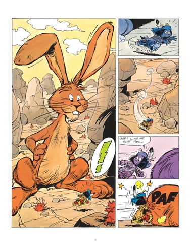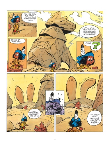 Comme convenu, Yakari attend son amie Arc-en-Ciel au pied du Rocher de l'Ours. Soudain, d'immenses oreilles s'agitent à l'horizon. Ce sont celles de Nanabozo, le Grand Lapin. Ce facétieux magicien apprend à Yakari qu'il est le totem d'Arc-en-Ciel, à qui il a offert des mocassins magiques pour qu'elle puisse se rendre au pays où les ours sont blancs comme la neige. La fillette, impatiente, est déjà partie. Il faut la rejoindre !