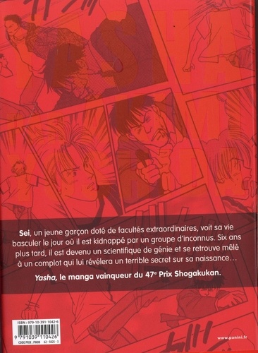 Sei, un jeune garçon doté de facultés extraordinaires, voit sa vie basculer le jour où il est kidnappé par un groupe d'inconnus. Six ans plus tard, il est devenu un scientifique de génie et se retrouve mêlé à un complot qui lui révélera un terrible secret sur sa naissance... Yasha, le manga vainqueur du 47e Prix Shogakukan.