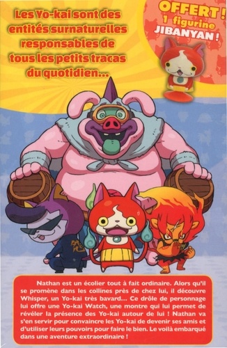 Les Yo-kai sont des entités surnaturelles responsables de tous les petits tracas du quotidien... Nathan est un écolier tout à fait ordinaire. Alors qu'il se promène dans les collines près de chez lui, il découvre Whisper, un Yo-kai très bavard... Ce drôle de personnage lui offre une Yo-kai Watch, une montre qui lui permet de révéler la présence des Yo-kai autour de lui ! Nathan va s'en servir pour convaincre les Yo-kai de devenir ses amis et d'utiliser leurs pouvoirs pour faire le bien. Le voilà embarqué dans une aventure extraordinaire ! L'intégralité de la saison 1 de "Yo-Kai Watch" (5 tomes) en coffret exclusif à tirage limité. Offert ! 1 figurine Jibanyan !