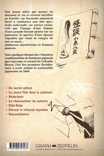 Une jeune mère qui meure en donnant la vie et revient terrifier sa famille... Un farouche samouraï forcé à combattre une tête spectrale nuki-nubi... Un novice ensorcelé par l'image d'une femme d'une grande beauté peinte sur un panneau... Le spectre d'une épouse répudiée qui vient se venger de son ex-mari... Ambiance mystérieuse et frissons assurés voici les thèmes des 7 histoires traditionnelles de fantômes japonais que regroupe ce recueil basé sur les écrits de Yakumo Koizumi (Lafcadio Hearn), l'un des premiers Occidentaux a avoir adopté la nationalité japonaise en 1896. Un manga qui séduira les amateurs de Yokai japonais !