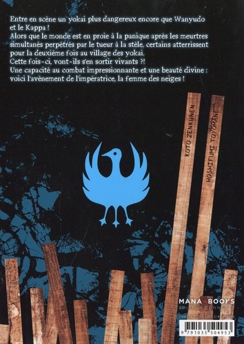 Entre en scène un yokai plus dangereux encore que Wanyudo et le Kappa ! Alors que le monde est en proie à la panique après les meurtres simultanés perpétrés par le tueur à la stèle, certains atterrissent pour la deuxième fois au village des yokai. Cette fois-ci, vont-ils s'en sortir vivants ? ! Une capacité au combat impressionnante et une beauté divine : voici l'avènement de l'impératrice, la femme des neiges !