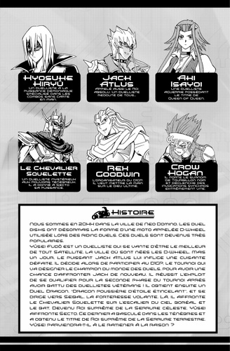 Suite des aventures de Yusei Fudo, un duelliste qui pratique le combat de monstres sur des motos appelées D-Wheel.
