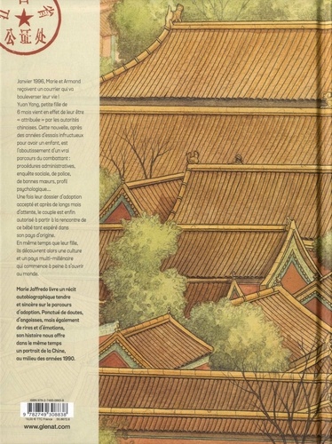 Un récit tendre et sincère sur le parcours d'une adoption Janvier 1996, Marie et Armand reçoivent un courrier qui va bouleverser leur vie ! Yuan Yang, petite fille de 6 mois vient en effet de leur être "attribuée" par les autorités chinoises. Cette nouvelle, après des années d'essais infructueux pour avoir un enfant, est l'aboutissement d'un vrai parcours du combattant : procédures administratives, enquête sociale, de police, de bonne moeurs, profil psychologique... Une fois leur dossier d'adoption accepté et après de longs mois d'attente, le couple est enfin autorisé à partir à la rencontre de ce bébé tant espéré dans son pays d'origine. En même temps que leur fille, ils découvrent alors une culture et un pays multi-millénaire qui commence à peine à s'ouvrir au monde. Marie Jaffredo livre un récit autobiographique tendre et sincère sur le parcours d'adoption. Ponctué de ses doutes, de ses angoisses, mais également de rires et d'émotions, son histoire nous offre dans le même temps un portrait de la Chine au milieu des années 1990.