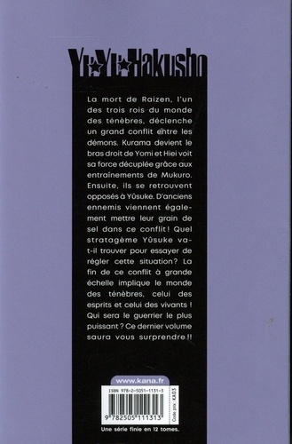 La mort de Raizen, l'un des trois rois du monde des ténèbres déclenche un grand conflit entre les démons. Kurama devient le bras droit de Yomi et Hiei voit sa force décuplée grâce aux entraînements de Mukuro. Ensuite, ils se retrouvent opposés à Yûsuke. D'anciens ennemis viennent également mettre leur grain de sel dans ce conflit ! Quel stratagème Yûsuke va-t-il trouver pour essayer de régler cette situation ? Qui sera le guerrier le plus puissant ? Ce dernier volume saura vous surprendre !!