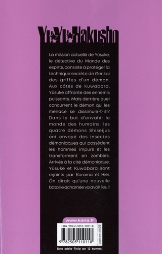 La mission actuelle de Yûsuke, le détective du Monde des esprits, consiste à protéger la technique secrète de Genkai des griffes d'un démon. Aux côtés de Kuwabara, Yûsuke affronte des ennemis puissants. Mais derrière quel concurrent le démon qui les menace se dissimule-t-il ! ? Dans le but d'envahir le monde des humains, les quatre démons Shiseijus ont envoyé des insectes démoniaques qui possèdent les hommes impurs et les transforment en zombies. Arrivés à la cité démoniaque, Yûsuke et Kuwabara sont rejoints par Kurama et Hiei. On dirait qu'une nouvelle bataille acharnée va avoir lieu !!