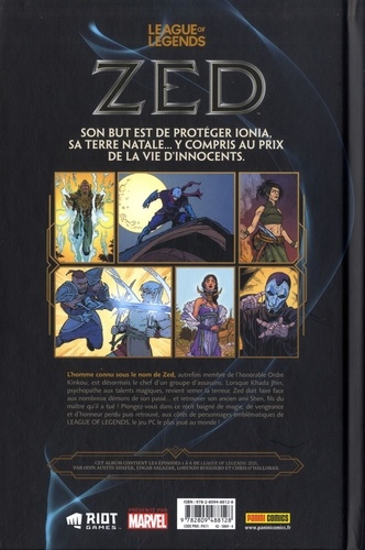 Il fût un temps où Zed était un membre de l'honorable Ordre Kinkou. Il est désormais le chef d'un groupe d'assassins prêts à tout pour défendre Lonia, leur patrie. Lorsque le psychopathe Khada Jhin reprend du service, Zed doit affronter son passé et faire alliance avec son ancien ami Shen dont il a tué le maître. Après League of Legends : Ashe et League of Legends : Lux, voici le troisième récit situé dans l'univers du jeu vidéo phare de la scène de l'e-sport.