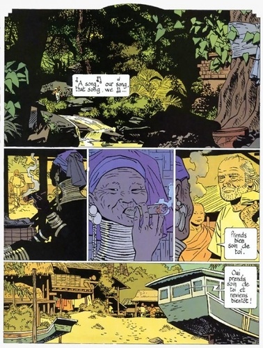 Zeke, à cette époque-là, c'était A Song, des millions de disques vendus. On le voyait avec les Moody Blues, Pink Floyd, Dylan, Stevie Wonder, Bukowski, Kerouac et autres Andy Warhol. A cette époque-là, Zeke aimait Avery, aussi belle que brillante. Et puis plus rien. Plus de Zeke, Disparu. Envolé. Après vingt ans d'absence, coucou c'est moi, le voici qui donne signe de vie. Et c'est sur le Mékong, entre Laos et Birmanie, qu'Esmé, sa vieille et gentiment folle de mère, retrouve "le petit". Là, derrière un projecteur de diapositives, s'adressant de village en vinage à des publics aussi attentifs qu'amusés, Zeke raconte... des histoires. Par ses mots, son dessin et ses couleurs qui se nourrissent les uns des autres, par sa mise en images inventive, par ce ton, à la fois léger et grave, empreint d'un humour réjouissant, avec lequel s'expriment ses personnages, les rendant si romanesques, oui, décidément, Cosey s'affirme comme l'un des auteurs de BD contemporains les plus originaux.