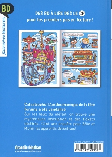 Catastrophe ! L'un des manèges de la fête foraine a été vandalisé. Sur les lieux du méfait, on trouve une mystérieuse inscription et des tickets déchirés... C'est une enquête pour Zélie et Micha, les apprentis détectives !