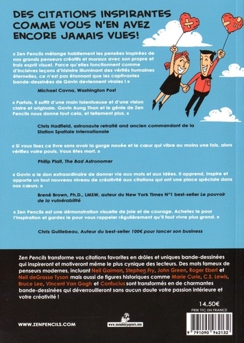 Zen Pendis transforme vos citations favorites en drôles et uniques bande-dessinées qui inspireront et motiveront même le plus cynique des lecteurs. Des mots fameux de penseurs modernes, incluant Neil Gaiman, Stephen Fry, John Green, Roger Ebert et Neil deGrasse Tyson mais aussi de figures historiques comme Marie Curie, C. S. Lewis, Bruce Lee, Vincent Van Gogh et Confucius sont transformés en de charmantes bande-dessinées qui déverrouilleront sans aucun doute votre passion intérieure et votre créativité !
