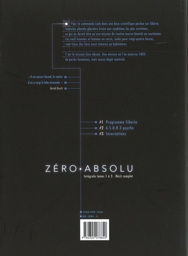 Pour le commando isolé dans une base scientifique perdue sur Sibéria, lointaine planète glaciaire aux conditions les plus extrêmes, ce qui ne devait être qu'une mission de routine tourne bientôt au cauchemar. Ces neuf hommes et femmes en sursis, isolés pour vingt-quatre heures, vont tisser des liens aussi intenses qu'éphémères. C'est la mission Zéro Absolu, une mission où l'on autorise 100 % de pertes humaines, mais aucun dégât matériel.