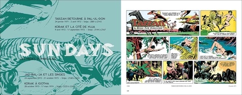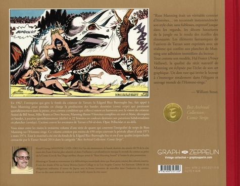 En 1967, l'entreprise qui gère le fonds du créateur de Tarzan, la Edgard Rice Burroughs Inc, fait appel à Russ Manning pour prendre en charge la production des bandes dessinées (comic strips) qui paraissent quotidiennement dans la presse, avec comme condition que celles-ci soient en harmonie avec la vision du créateur. Assisté de Bill Stour, Mike Royer et Dave Stevens, Manning illustre 9 histoires complères en noir et blanc, découpées en bandes, à paraitre quotidiennement (dailies) et 22 histoires en couleurs destinées am parutions hebdomadaires en planches (sundays). L'action couvre les aventures de Tarzan à Pal-ul-don, Opar, Rellucidar et au-delà. Vous tenez entre les mains le troisième volume d'une série de quatre qui couvrent l'intégralité de strips de Ruts Manning sur l'Homme-singe. Ce volume contient pas moins de 650 strips couvrant la période allant d'août 1971 mars 1974. Tout le matériel a été tiré du fonds de la Edgard Rice Burroughs Inc et est d'une qualité irréprochable consacrée par le Eisner Award 2014 dans la catégorie "Best Archival Collection : Comic Strips".