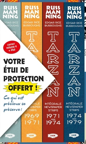 En 1967, Russ Manning fut choisi par la société Edgar Rice Burroughs, Inc. (héritier des droits du célèbre auteur) pour adapter en bandes dessinées les romans de la série Tarzan en respectant le climat d'intrigues et le style de l'auteur afin de mieux appréhender la vision qu'avait Edgar Rice Burroughs de son l'Homme- Singe. Avec l'aide de Bill Stout, Mike Royer et Dave Stevens, Manning créa 22 histoires en couleurs destinées aux éditions dominicales et 9 aventures en noir et blanc pour les pages quotidiennes. Il en résulte près de 2050 strips réalisés par le plus grand dessinateur de Tarzan. Il fallait bien 4 volumes de 296 pages pour réunir l'intégrale de ces parutions.