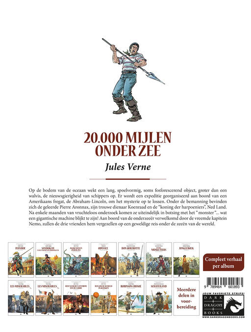 Een fantastische reis naar de afgrond Op de bodem van de oceaan wekt een lang, spoelvormig, soms fosforescerend object, groter dan een walvis, de nieuwsgierigheid van zeelieden. Er wordt een expeditie georganiseerd aan boord van een Amerikaans fregat, de Abraham-Lincoln, om het mysterie op te lossen. Onder de bemanning bevinden zich de geleerde Pierre Aronnax, zijn trouwe dienaar Conseil en de “koning van de harpoeniers”, Ned Land. Na enkele maanden vruchteloos onderzoek komen ze in botsing met het “monster”. Dat blijkt een gigantische machine te zijn! Ze worden verwelkomd aan boord van de onderzeeër door de vreemde kapitein Nemo. De drie vrienden zullen hem vergezellen op een geweldige onderwaterreis over de wereld