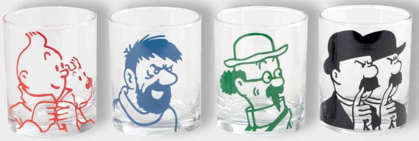 een reeks van 4 glazen ter ere van Kuifje en zijn vrienden. Aangeboden in een mooi pack en vergezeld van een verrassingsgeschenk in het pack.