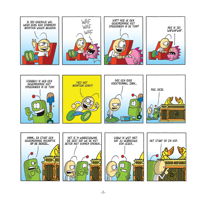 Het maakt niet uit hoeveel bladeren er op de rails liggen of hoeveel wisselstoringen het net teisteren, want elke ochtend begint goed voor treinreizigers: met Scribbly. Aan absurditeit en referenties naar jaren 80 films en speelgoed geen gebrek. In dit album maakt Scribbly eindelijk kennis met zijn langverloren vader en worden de inwoners van de inrichting voor aparte gestoorden vervangen door robots. Jean-Paul Arends tekent Scribbly al vijftien jaar waarvan al tien jaar als publicatie in dagblad Metro.