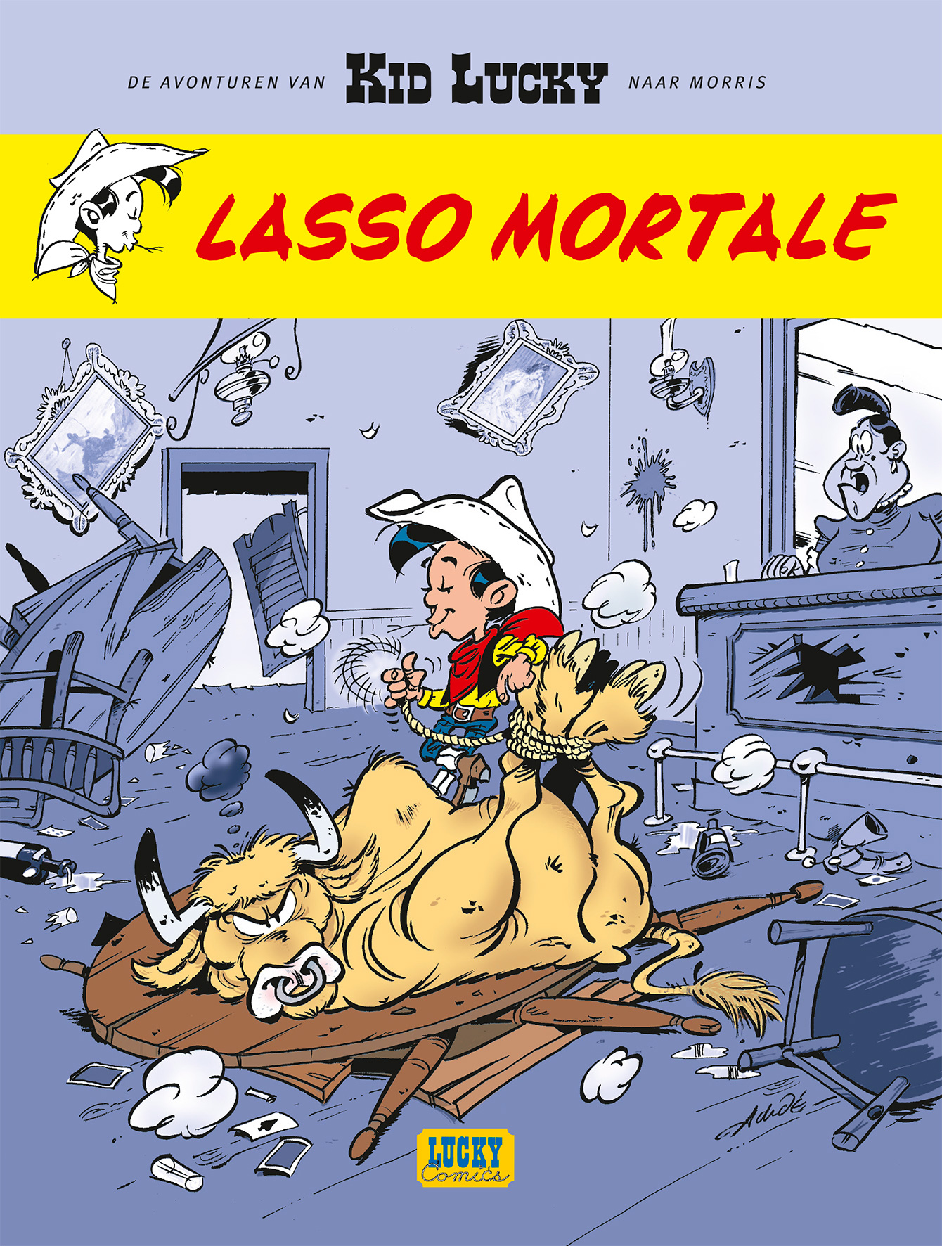 Drie turven hoog, een geel hemd, een rode halsdoek en een grassprietje uit de mondhoek: dat is Kid Lucky ten voeten uit! Hij bewaart de orde in de school van Nothing Gulch en is sneller dan zijn schaduw Vooral als het gaat om karweitjes te ontvluchten! Een hilarische en zwierig getekende reeks over het ontstaan van een legende, die van de grootste maar nu nog even de kleinste cowboy van het westen! Een reeks voor de kleintjes, in het spoor van de Grote Lucky Luke.