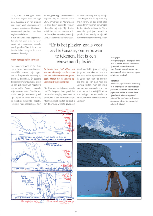 Dit album vertelt in de vorm van een interview over de creatie van de twee delen van Een Nacht in Rome, de verlangens, de twijfels, de grafische voorstudies, de herwerkte of weggelaten prenten en verzamelt alle illustraties van Marie die Jim vier jaar lang tekende met die mooie brunette in de buurt ...