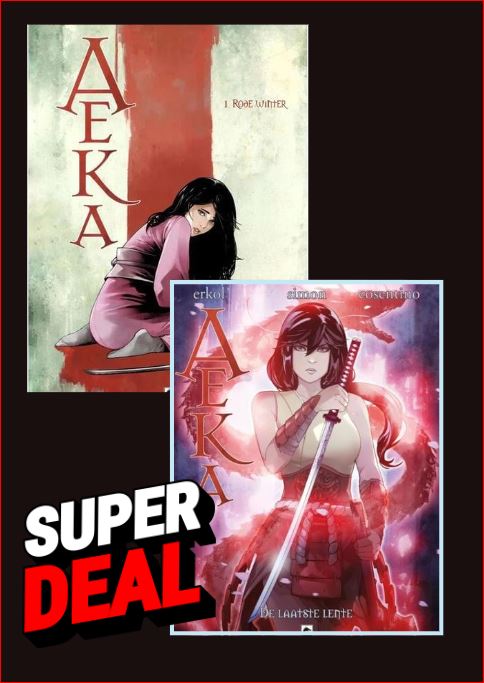 Twee strips in dit voordeelpakket. Saito, een joviale en sluwe boer, verlaat zijn geboorteland en zijn boerderij op zoek naar avontuur. Avonturen waar een einde aan zou zijn gekomen als Aeka, een jong meisje van een jaar of vijftien, zijn leven niet had gered. Saito is gefascineerd door het jonge meisje en haar vechtkunst. Maar hij zal haar vertrouwen niet zomaar kunnen winnen en de mysteries die haar omringen ontrafelen. Wat hij zal ontdekken zal al zijn overtuigingen verwerpen... Aeka is een historische Japanse serie die chambara (verhaal van sabels) en mythologische wezens (draken) vermengt, tegen de achtergrond van een rituele zoektocht....