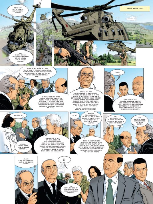Schotland. De luchtaanval op de leiders van de G8 leidt tot opschudding binnen de Britse geheime diensten. Jessica en haar man staan onder verdenking en worden opgesloten, terwijl Tom voor diefstal wordt opgepakt. De mysterieuze, revolutionaire groepering Anarchy 2012 trekt zich terug op een geheime basis in de Noordzee, waar ze hun volgende operatie voorbereiden. Hun charismatische leider heeft een akkoord gesloten met een dissidente tak van de IRA om nog harder te kunnen toeslaan. Want deze eerste aanval was slechts de inleiding op een machiavellistisch plan om het westen te ontdoen van haar leiders… Superspannende vliegtuigstrip met verhalen die dicht op de actualiteit zitten. Scenario van Frédéric Zumbiehl (Buck Danny Classic). Tekeningen van Loute (Alfa - Eerste wapenfeiten).