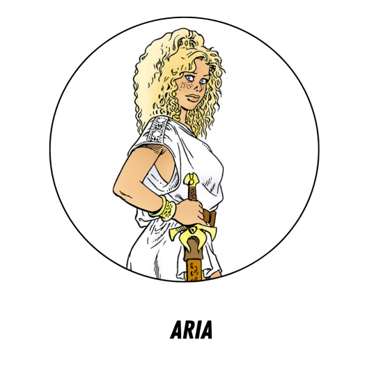 Aria, gecreëerd in 1980 door Michel Weyland voor Le Lombard, is een onstuimige, moedige jonge vrouw die vaardig is met wapens. Ze reist naar eigen goeddunken en grijpt kansen in een wereld dat herstellende is van een nucleaire catastrofe en waar magie naast de heroplevende wetenschap een plaats heeft gevonden.