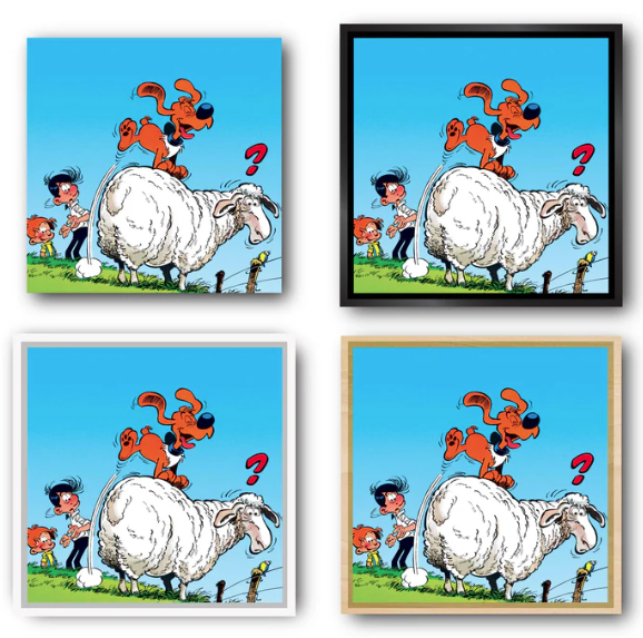 Onze Amerikaanse baklijsten in "L"-profiel worden met de hand in Frankrijk gemaakt van massief hout. Deze frames bieden een elegante esthetiek zonder af te leiden van het kunstwerk. Ze zijn verkrijgbaar in verschillende afwerkingen om te passen bij de sfeer van stripverhalen.