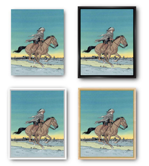 Onze Amerikaanse baklijsten in "L"-profiel worden met de hand in Frankrijk gemaakt van massief hout. Deze frames bieden een elegante esthetiek zonder af te leiden van het kunstwerk. Ze zijn verkrijgbaar in verschillende afwerkingen om te passen bij de sfeer van stripverhalen.