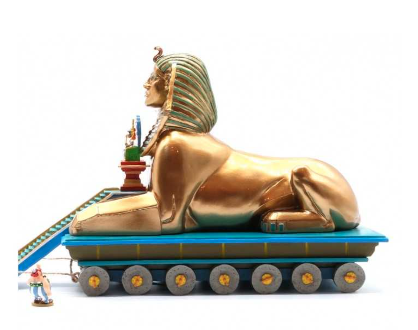 Astérix et Obélix, le char de cléopâtre. Figurine de collection en métal Pixi, inspirée du Tome 6 Astérix et Cléopâtre, Page 27 Case B1. Entièrement sculptées et peintes à la main, les figurines Pixi sont de véritables pièces de collection.