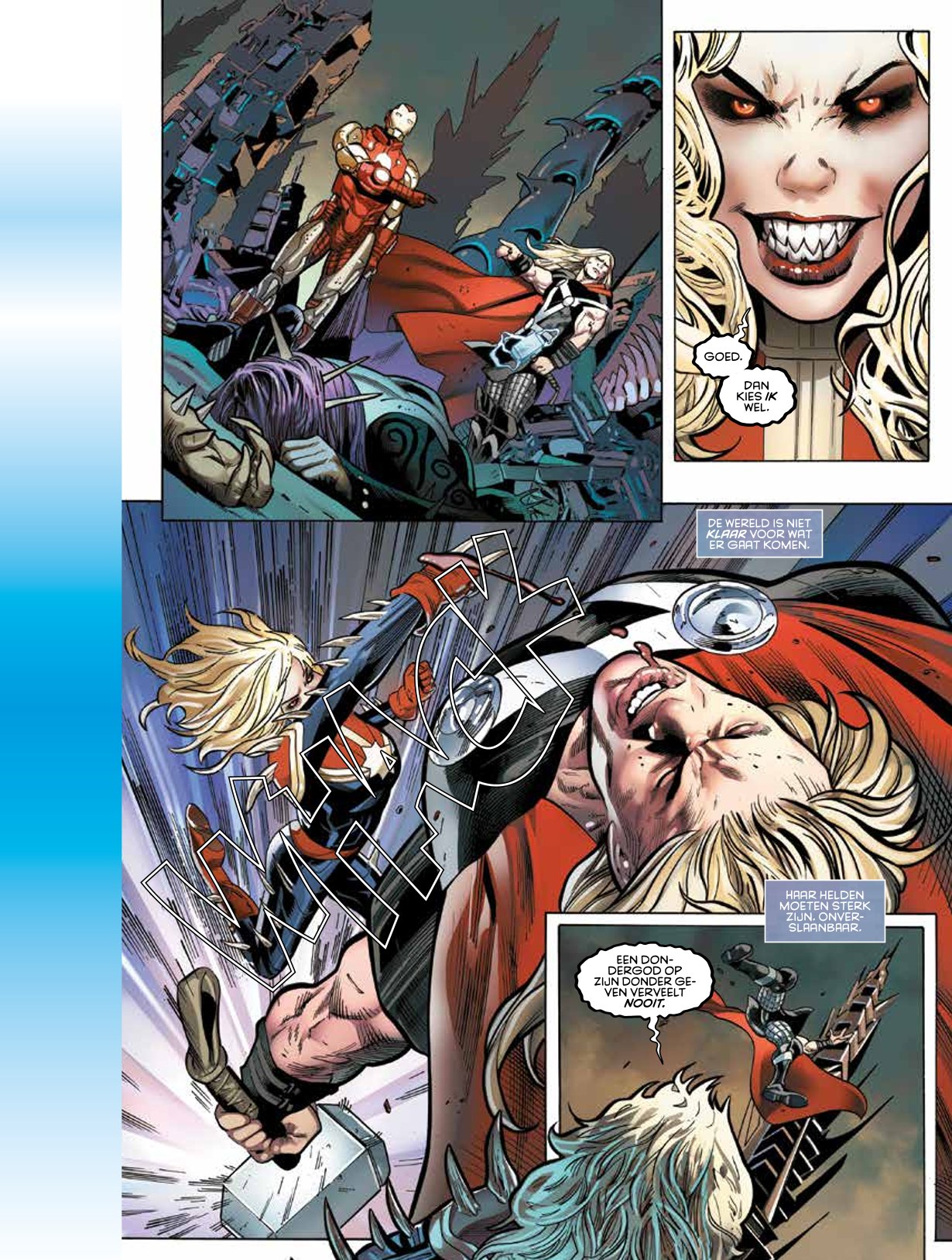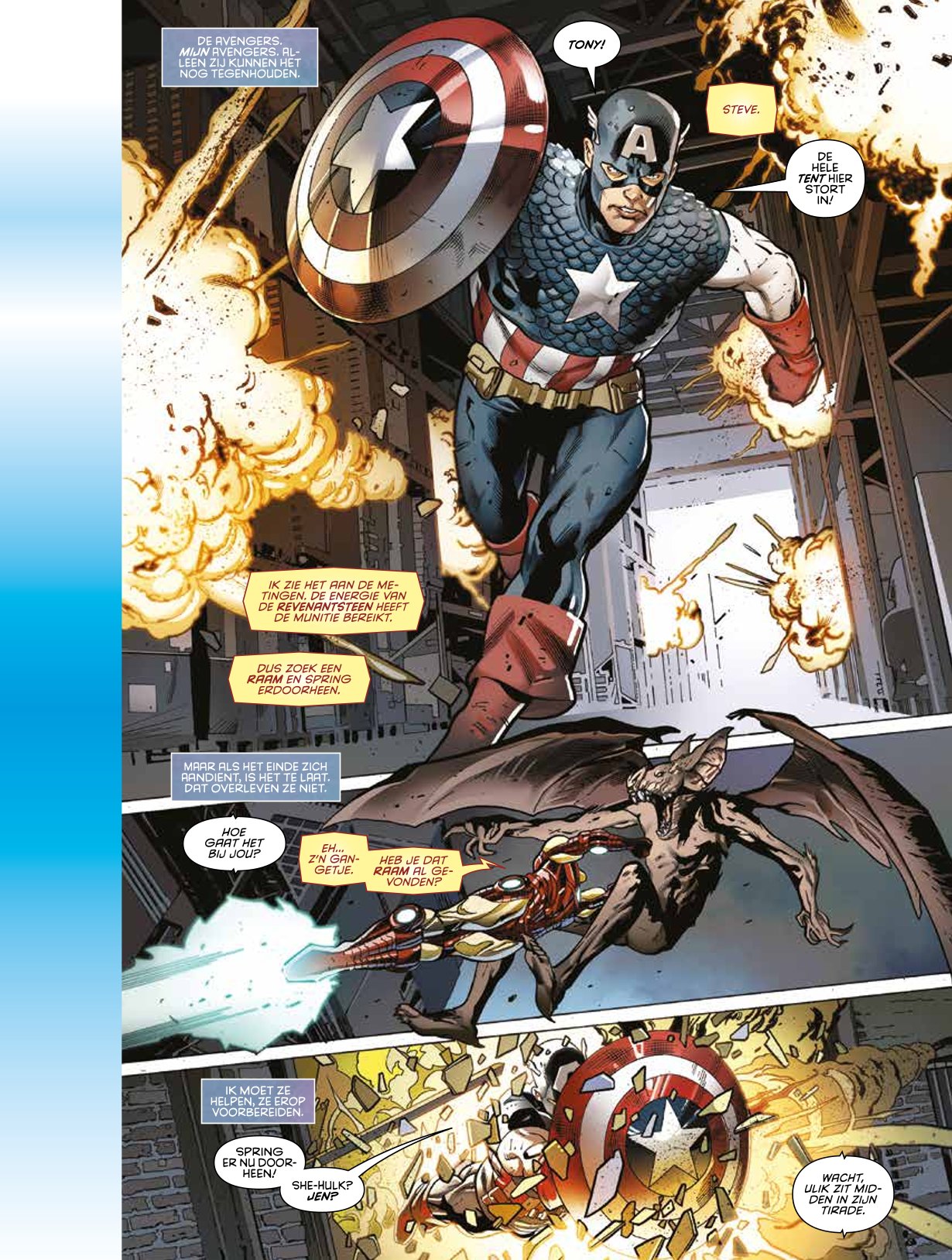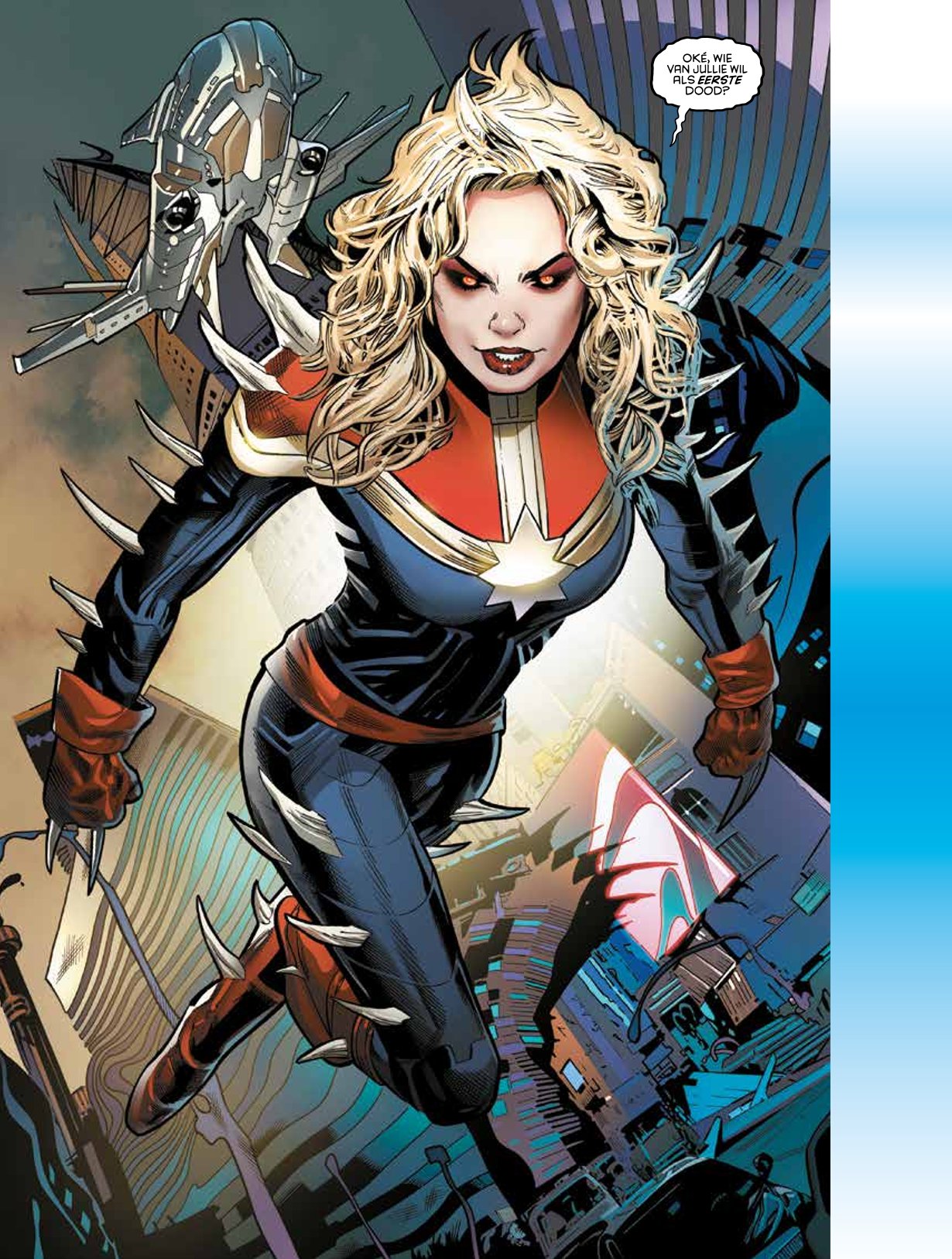 Een buitenaardse aanval, een vervormde stad en Captain Marvel die met moordlustige bedoelingen naar de Avengers kijkt? De Avengers zijn gevangen en hun enige hoop ligt bij hun grootste held: Doctor Doom?! Een leger van Red Skulls dreigt hen te overweldigen, een groep bloeddorstige moordenaars zal hen opjagen en zelfs Spider-Man is op hen uit! Maar wie zit er achter deze waanzin die steeds opnieuw de werkelijkheid verandert? All Out Avengers Tekst: Derek Landy Tekeningen: Greg Land ISBN 1: 9789464604108 Softcover 56 blz.