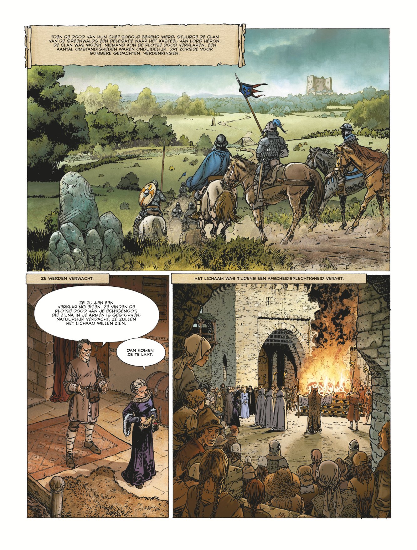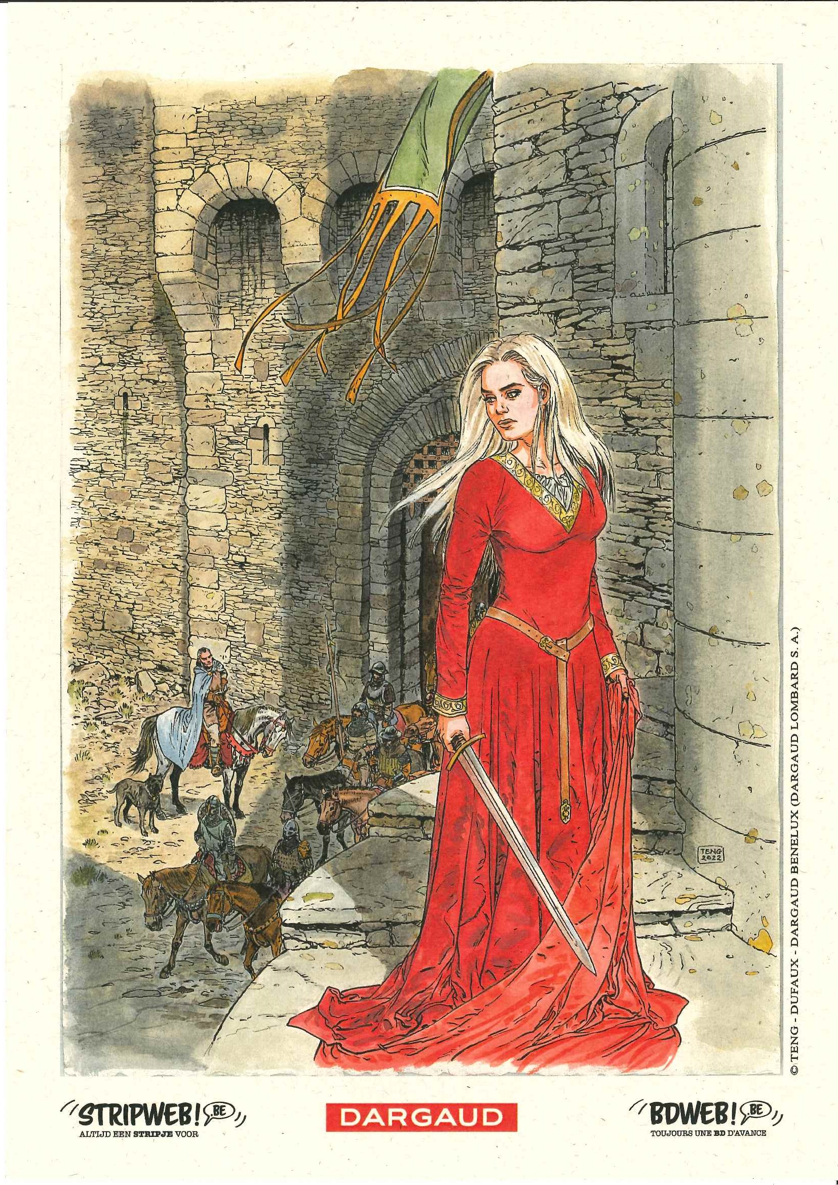 laatste exemplaren met ex libris Deze cycli zal zich afspelen na de periode van Sioban Tweede deel van deze cyclus In het gezelschap van Seamus bezoekt Sioban, de koningin van Sudenne, haar oom, Lord Heron. De laatste vertelt hoe hij in het gezelschap van Siobans vader werd geconfronteerd met de angstaanjagende Cryptos. Sioban ontmoet zijn nicht, Aylissa, die op het punt staat te trouwen. Achter haar engelengezicht verbergt ze plotselinge uitbarstingen. Sommigen beweren zelfs dat ze gek is. Tijdens het paardrijden daagt Aylissa Sioban uit om de Pathmoor Rift over te steken. Sioban faalt. Ze wordt neergeslagen op de bodem van een ravijn. Ongeval of val gezet door Aylissa? Sioban dankt zijn leven alleen aan een man van de O'Kallan-clan. Deze clan die ooit de Sudenne heeft verraden, en waarvan de leden sindsdien apart van de rest van de wereld hebben geleefd. Maar deze onverwachte ontmoeting zal het lot van Sioban veranderen. Door het hoofd te bieden aan de Niddhog ( Voor de lezers van Thorgal komt deze titel bekend voor....), dit monster uit vervloekte legendes, zal ze nu een nog grotere macht hebben, verleend door de Harfingg ... Met dit eerste deel van de vierde cyclus van De Klaagzang van de Verloren Gewesten, versterkt door het tekenwerk van Paul Teng , duikt Jean Dufaux nog dieper in het hart van het lot van Sioban, deze legendarische vrouw die nog niet klaar is met het onthullen van haar mysteries aan ons. Striptekenaar Paul Teng ( Nederland, °1955) tekende ook deze reeksen of delen hieruit. Als je fan bent van deze ongeloofelijk knappe tekenaar dan moet je zeker deze reeksen even bekijken. • Collectie Ontdekkingsreiziger • De Klaagzang van de verloren gewesten • De oneven Orde • De Telescoop • Delgadito • Shane • Tristan Scenarist Dufaux is een befaamd stripscenarist die reeds menig stripverhaal schreef waaronder deze ganse lijst • Foucauld • Barracuda • Betoveringen • Blake en Mortimer • Conquistador • Dakota • De Aasgieren • > De Klaagzang van de verloren gewesten • De Rochesters • De Rode Keizerin • Rovers van Keizerrijken • Dixie Road • Djinn • Dubbel Masker • Een Koning zonder verstrooiing • Fox • Giacomo C • Het Maagdenbos • Het pad van Jessica • Jessica Blandy • Kruistocht • Leren Masker • Medina • Mister BLack • Murena • Niklos Koda • Regenwolf • Nomade • Saga Valta • Saria • Schimmenspel • The Dream • Venus H • Vincent