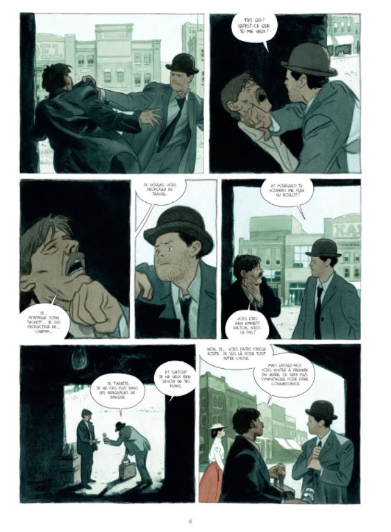 06/2022 PAS VERSCHIJNT OOK IN GELIMITEERDE STRIPWEBVERSIE OP 100 EX met genummerde ex-libris = BAD-reputation-stripwebversie-100 Wie we werkelijk zijn, wij Daltons'. 1908. Oklahoma. Emmett Dalton is al lang geen crimineel meer. Hij heeft zijn schuld aan de samenleving afbetaald, is tevreden met een rustig bestaan en probeert soms zelfs de kerk te bezoeken bidden - zonder al te veel succes voor de laatste activiteit. Dus wanneer een filmproducent aanbiedt om deel te nemen aan het schrijven van een film gewijd aan de wandaden van zijn legendarische broers en zussen, is hij achterdochtig, weigert, en realiseert zich dan eindelijk dat hij een kans kreeg : verdrijf de mythe, herstel een schijn van waarheid en red de reputatie van zijn familie. De vier Dalton-broers werden niet als bandieten geboren. Integendeel! Ze namen allemaal de rol van maarschalk aan in het begin van hun carrière, en het was niet vrijwillig dat ze omarmden later het leven van voortvluchtigen ... Wie anders dan Emmett, de enige overlevende, om deze pijnlijke herinneringen op te graven en zonder hypocrisie het ware verhaal van de Dalton te vertellen, een verhaal dat geworteld is in een Amerika dat kijkt naar de F ar West als een bijna vervlogen tijdperk, herleeft Slechte Reputatie de gewoonten van een realistische, harde en melancholische western. Het portretteert een gedemystificeerd Amerikaans Westen waar geweld en chaos, hoewel onvermijdelijk, nooit worden overdreven of verheerlijkt. Magnifiek gedragen door de tekening van Emmanuel Bazin - ergens tussen Edward Hopper en Mathieu Bonhomme in - graaft Antoine Ozanam diep in de psychologie van zijn personages en levert een subtiel en ontroerend verhaal.