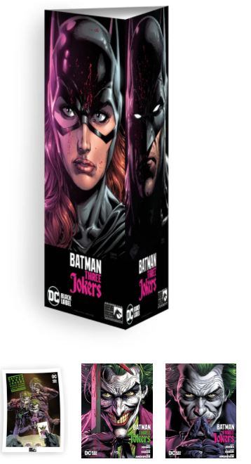 geen korting op dit promopakket Dertig jaar nadat Batman: The Killing Joke de strip voor altijd veranderde, onderzoekt -Three Jokers- opnieuw de mythe van wie of wat The Joker is en wat de kern vormt van zijn eeuwige strijd met Batman. New York Times bestseller-schrijver Geoff Johns en Jason Fabok, werken samen om het ultieme verhaal van Batman en The Joker te vertellen! Dit is de epische miniserie waar je op hebt gewacht. Ontdek waarom er drie Jokers zijn en wat dat betekent voor de Dark Knight en de Clowneske misdaadprins. Het is een mysterie zoals Batman nog nooit heeft meegemaakt! 2 x Softcover + Totem + Art-Print 2 x 56 blz