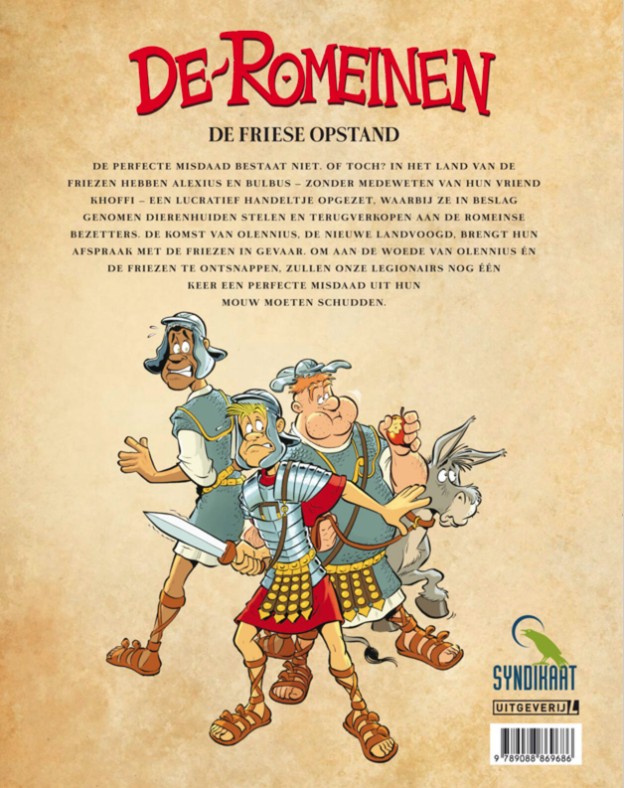 De perfecte misdaad bestaat niet. Of toch? In het land van de Friezen hebben Alexius en Bulbus — zonder medeweten van hun vriend Khoffi — een lucratief handeltje opgezet, waarbij ze in beslag genomen dierenhuiden stelen en terug verkopen aan de lokale inwoners. Een win-win situatie. De komst van Olennius, de nieuwe landvoogd, brengt hun afspraak met de Friezen in gevaar. Om aan de woede van Olennius én de Friezen te ontsnappen, zullen onze legionairs nog één keer een perfecte misdaad uit hun mouw moeten schudden.