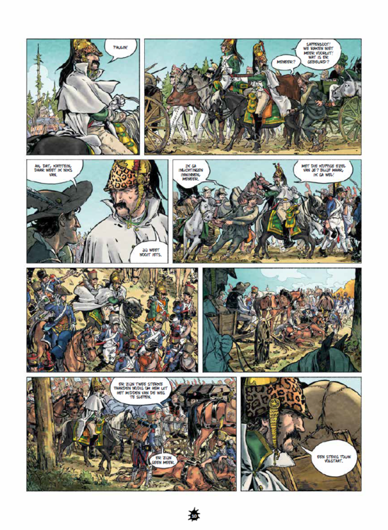 September 1812. Napoleon en zijn Grande Armée vallen Moskou binnen zonder de minste tegenstand. Niet zonder reden: de stad is leeg. Waar zijn de bewoners? En de levensmiddelen? Diezelfde avond nog brandt de Chinese wijk. De vlammen verspreiden zich snel over de huizen van dennenhout. Er valt niets tegen te beginnen: de brandweerpompen zijn verdwenen. Het is een valstrik! Berezina vertelt onverbloemd over de gruwelijke Russische campagne die in zes maanden het leven kostte aan meer dan driehonderdvijftigduizend mensen en die de wereld aantoonde dat Napoleon niet onoverwinnelijk was. Striptekenaar Gil Ivan ( Spanje ) is de striptekenaar van volgende stripreeksen Dragonders van de grens Buonaparte Berezina