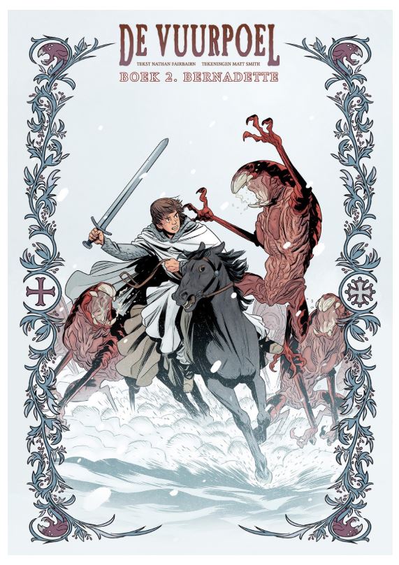 In de Franse Pyreneeën leidt baron Simon van Montfort rond 1220 al jaren een kruistocht tegen de Katharen. Om een paar beginnende kruisvaarders iets te doen te geven, stuurt hij ze de bergen in voor een onbelangrijk klusje in een dorpje waar volgens geruchten het Kathaarse geloof beleden wordt, maar als de groep vanuit het niets te maken krijgt met bloeddorstige buitenaardse wezens die moeilijk te bestrijden zijn, loopt de spanning hoog op! Bernadette is deel 2 van een driedelige reeks. Auteurs zijn de Canadese scenarist en inkleurder Nathan Fairbairn en de Amerikaanse striptekenaar en illustrator Matt Smith.